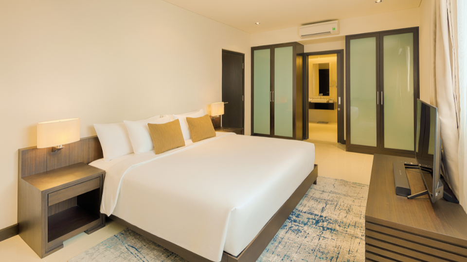 Spacious 2-bedroom suite with stunning views of the sea, city, and mountains. Features a private entrance, large balcony, full kitchen, living room, and two separate bedrooms – perfect for families or groups seeking comfort in the heart of Nha Trang.