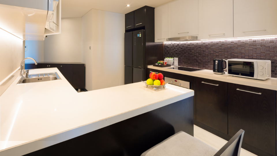 A perfect solution for a larger family vacation or a long-term stay in Nha Trang. Spacious 3-bedroom suite with stunning views, full kitchen, and modern amenities.